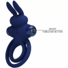 Si no puedes resistirte al poder potenciador del sexo de un anillo para el pene, entonces te encantará este anillo para el pene en forma de conejo. El anillo en sí abrazará la base de su eje y ayudará a mantener su erección más dura por más tiempo. La silicona sedosa frotará contra su clítoris y enviará intensas vibraciones a su clítoris y a todo su eje para una estimulación increíble como nunca antes. La bala adjunta cuenta con diez patrones de vibración diferentes para que pueda proporcionarte cualquier sensación que prefieras. Disfrute de este anillo para el pene de silicona de alta calidad a un precio asequible y una sensación inmejorable.